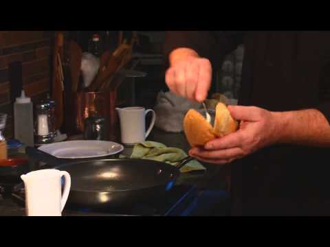 - Dredge in corn flour mix, let sit while your heat the pan, dredge in corn flour mix a secound time. Ladle clarified butter on griddle, place walleye corn crust down and cook for 3 minutes, tun and cook another 2.